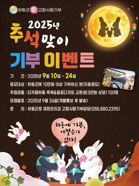 [한국Q뉴스] 하동군이 다가오는 추석을 앞두고 벌초 기간에 맞춰 ‘고향사랑기부 특별 이벤트’를 진행 중이다.