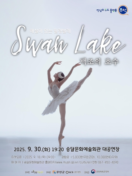 [한국Q뉴스] 전남 무안군은 오는 9월 30일 화요일 오후 7시 20분, 승달문화예술회관 대공연장에서 ‘해설이 있는 힐링발레 ‘백조의 호수’’를 선보인다.