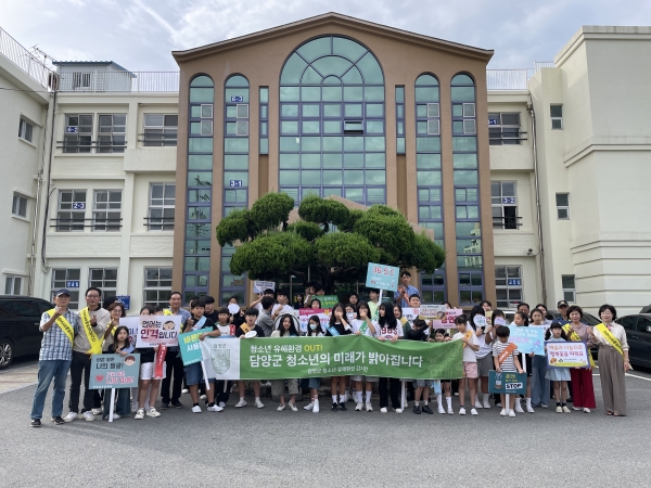 이번 캠페인은 담양군, 담양경찰서 담양교육지원청, 청소년유해환경감시단, 담양군청소년상담복지센터 등 관계기관과 민간단체가 함께 참여해 담양남초등학교 앞에서 캠페인을 진행했다.