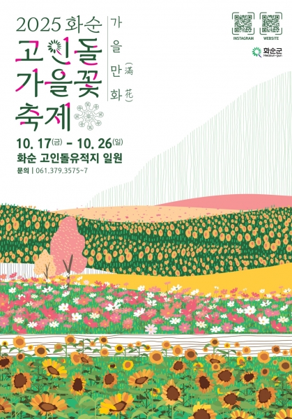 [한국Q뉴스] 화순군은 오는 10월 17일부터 26일까지 10일간 화순 고인돌 유적지 일원에서 ‘2025 화순 고인돌 가을꽃 축제’를 개최한다고 밝혔다.