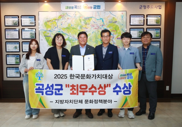 [한국Q뉴스] 곡성군이 ‘2025 한국가치문화대상’에서 2년 연속 최우수상을 받으며 지역 문화정책의 우수성을 다시 한번 인정받았다.