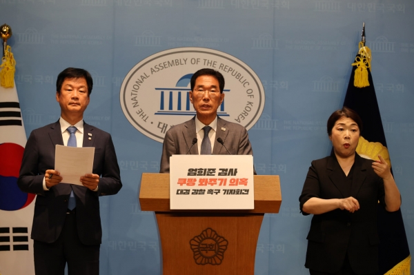 [한국Q뉴스] 더불어민주당 국회 환경노동위원회 간사 김주영 의원이 법제사법위원회 박균택 의원과 함께 오늘 9시 20분 국회 소통관에서 기자회견을 열고 ‘쿠팡 봐주기’ 의혹을 받고 있는 엄희준 검사에 대한 대검의 신속한 감찰을 촉구했다.