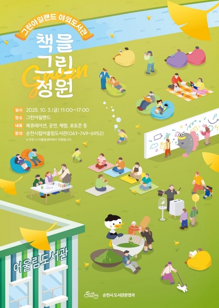 [한국Q뉴스] 순천시는 오는 10월 3일 오천그린광장 그린아일랜드에서 가을 야외도서관 ‘책을 그린 정원’을 운영한다고 밝혔다.