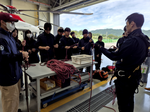 학생들은 소방헬기에 탑승해 출동 절차를 직접 경험하고 구조와 구급업무를 동시에 수행하는 항공대원의 역할을 이해하는 시간을 가졌다.