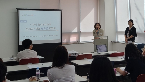 [한국Q뉴스] 전라남도 나주시는 지난 22일 청소년수련관에서 청소년수련관 유지보수 관련 간담회를 열고 청소년들의 의견을 직접 듣는 자리를 마련했다.