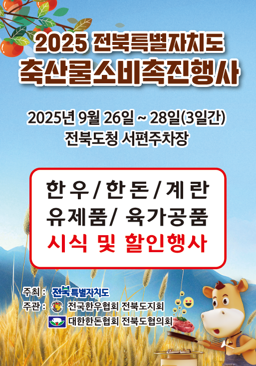 [한국Q뉴스] 전북특별자치도가 추석 명절을 맞아 도민들에게 안전하고 품질 좋은 축산물을 저렴하게 제공하기 위해 ‘2025년 축산물 소비촉진행사’를 연다.