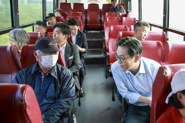영암공영버스터미널에서 출발해 삼호종합버스터미널까지 약 45분간 우승희 영암군수는, 버스 탑승객들과 교통 불편 상황을 포함해 다양한 이야기를 나누며 소통하고 꾸준한 교통서비스 개선 등을 약속했다.