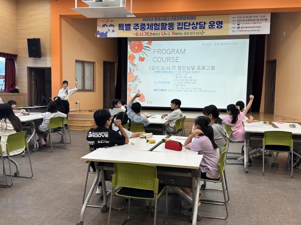 [한국Q뉴스] 문경시 청소년방과후아카데미는 지난 23일 청소년문화의집 3층 다목적홀에서 청소년 20여명을 대상으로 문경시 청소년상담복지센터와 함께 특별 집단상담 프로그램‘소·나·기’를 운영했다.
