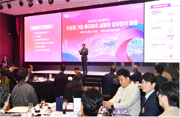 [한국Q뉴스] 부산시는 오늘 오전 11시, 서울 여의도 콘래드호텔에서 수도권 기업 대상으로 부산의 투자환경과 투자 특전을 설명하는 '수도권 투자유치 설명회'를 개최한다고 밝혔다.
