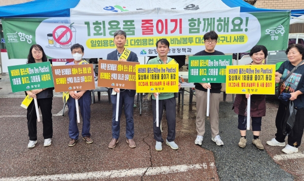 [한국Q뉴스] 함양군은 지난 25일 안의시장 일원에서 군청 환경정책과와 안의면사무소의 주최로 ‘1회용품 줄이기 캠페인’을 진행했다.
