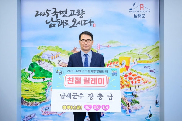 [한국Q뉴스] 남해군은 ‘2025년 고향사랑 방문의 해’를 맞이해 ‘친절 남해’ 이미지를 제고하고 민관협력으로 범군민 친절 마인드를 함양하기 위해 군민 모두가 공감하고 참여하는 ‘친절릴레이 캠페인’을 시작한다고 밝혔다.