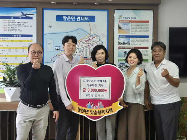 [한국Q뉴스] 무안군 망운면은 지난 25일 ㈜한웅테크가 지역의 사회적 약자와 어려운 이웃을 위해 사용해 달라며 이웃사랑 성금 300만원을 기탁했다고 밝혔다.
