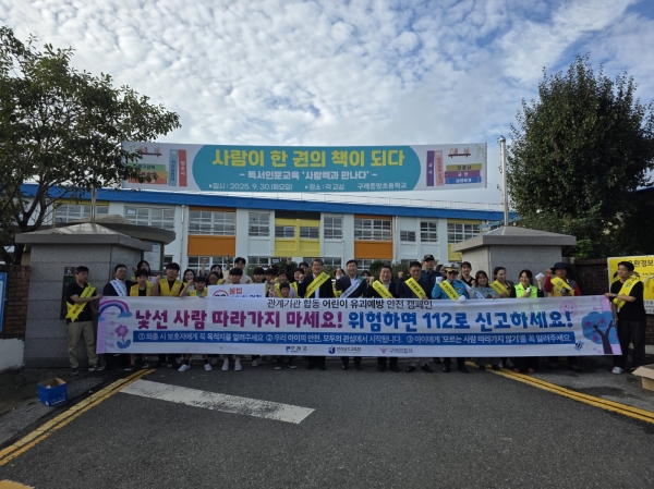 [한국Q뉴스] 전남 구례군은 지난 9월 26일 구례중앙초등학교 일원에서 ‘2025년 관계기관 합동 어린이 유괴예방 및 교통안전 캠페인’을 펼쳤다.