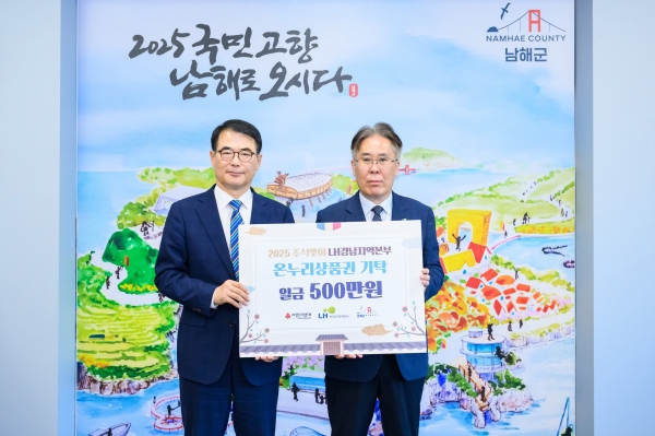 임 본부장은 “고향 남해에 작은 보탬이 되고 싶어 이번 기탁을 마련했다”며 “앞으로도 LH가 지역사회와 함께 성장하며 사회적 책임을 다할 수 있도록 꾸준히 노력하겠다”고 말했다.
