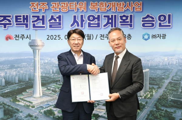 이에 전은수 ㈜자광 대표이사는 주택건설사업계획승인을 받기까지 적극 협력해 준 전북특별자치도와 전주시, 전주시민들에게 깊은 감사를 표하고 향후 추진될 개발사업이 전주· 발전과 시민들의 삶의 질 향상, 지역경제 활성화로 이어지도록 약속 이행에 적극 나설 것을 약속했다.