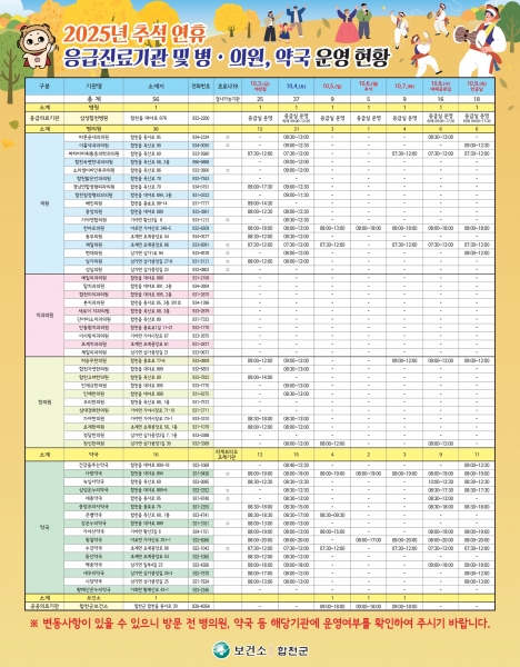 또한, 병·의원 및 약국 출입문에도 안내문을 부착해 연휴기간 동안 군민들의 불편을 최소화할 예정이다.
