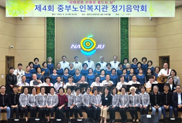 [한국Q뉴스] 전라남도 나주시 중부노인복지관은 지난 25일 복지관 다목적홀에서 제4회 중부노인복지관 정기음악회를 성황리에 개최했다.