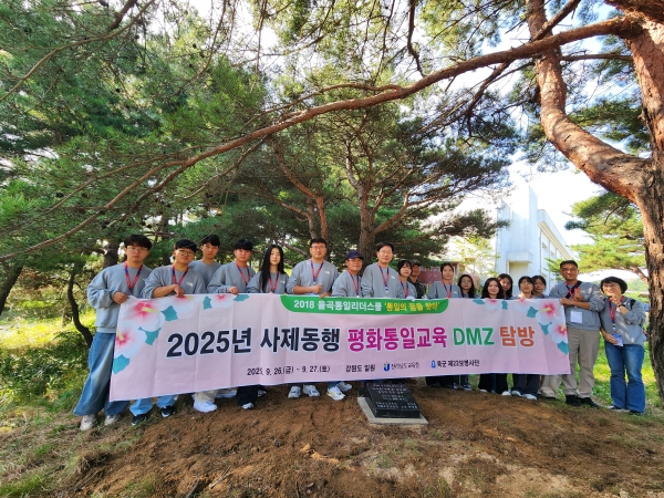 이번 DMZ탐방에는 2018년 ‘율곡통일리더스쿨’ 프로그램에 참여했던 학생과 운영추진단 20여명이 함께해, 7년 전 타임캡슐을 묻었던 율곡부대를 다시 찾았다.