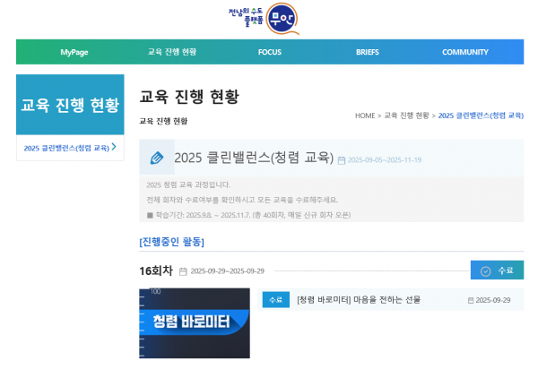 이번 청렴 상시학습은 새올행정시스템과 연계해 매일 자동 팝업과 배너 클릭 방식으로 제공되며 전 직원이 일상에서 청렴·윤리 관련 콘텐츠를 꾸준히 접하고 학습할 수 있도록 마련됐다.