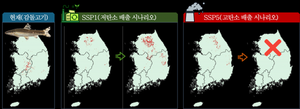 연구진은 이 시나리오로 진행되면 2050년에 가시고기, 부안종개, 한강납줄개가 먼저 사라지고 2080년에 흰수마자, 열목어, 어름치 등으로 범위가 확대되는 것으로 예측했다.