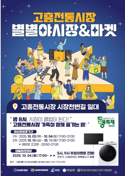 군 경제산업과 관계자는 “고흥전통시장은 단순한 장터를 넘어, 문화와 관광이 융합된 지역 대표 명소로 발전하고 있다”며 “이번 별별야시장을 통해 지역경제 활성화는 물론 군민과 관광객이 모두 함께 즐기고 소통하는 축제의 장을 만들겠다”고 말했다.