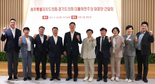 [한국Q뉴스] 경기도의회 더불어민주당이 30일 예담채에서 교섭단체 운영현황 공유 및 상호 교류·협력 강화를 위해 경기도의회를 방문한 제주도의회 더불어민주당과 간담회를 진행했다.