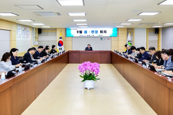 이날 회의에서는 지방세 체납액 일제 정리, 탄소중립포인트제 가입 등 군정 현안과 협조사항에 대한 보고가 이뤄졌으며 각 읍면에서는 경로잔치와 체육대회 개최, 추석맞이 국토대청결 활동 추진 등 지역 현안에 대한 보고가 진행됐다.