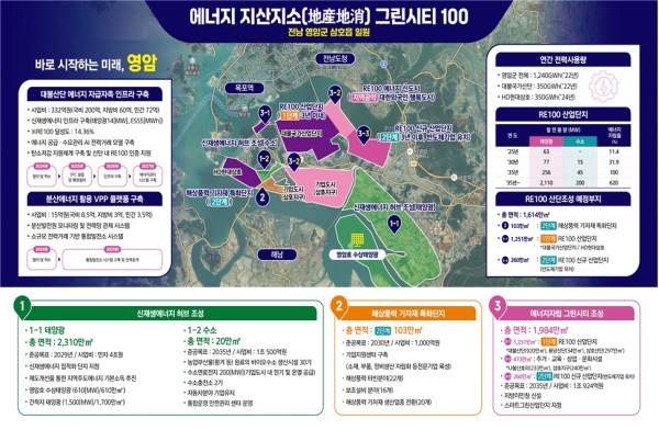 영암군은 군민 참여형 신재생에너지 사업을 추진해 태양광 발전소와 풍력 단지를 조성하고 거기서 나오는 수익을 주민 배당으로 환원하는 구조를 마련했다.