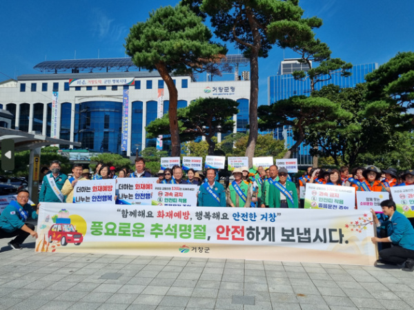 [한국Q뉴스] 거창군은 지난 1일 추석명절 맞이 귀성객의 교통안전과 긴 연휴 화재예방을 위해 자율방재단, 의용소방대, 여성민방위대, 안전보안관 등 80여명과 함께 거창전통시장 등에서 가두 캠페인을 추진했다.
