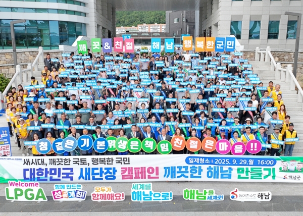해남군은 이를 계기로 9월 22일부터 10월 2일까지를 집중 청소주간으로 지정해 추석맞이 일제대청소, 방치 생활쓰레기 정리, 해안·농촌·도로·관광지·하천·공원 등 분야별 집중 수거 활동을 벌이고 있다.