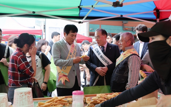 행사는 전통시장 이용 활성화와 지역경제 발전을 위해 개최됐으며 참여자들은 전통시장에서 농수산물과 제수용품을 구입하고 시장 상인과 소통하는 시간을 가지며 민생 현장을 살폈다.