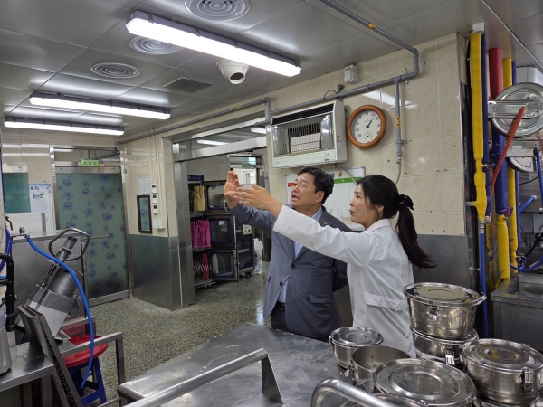 김호겸 의원은 “소규모 인원으로 4개 학교 급식 조리를 맡아서 고생하고 있는 영양교사 및 조리실무사들의 노고에 감사한다”고 하면서 급식 조리실 환기설비 개선 현황을 자세하게 점검했다.