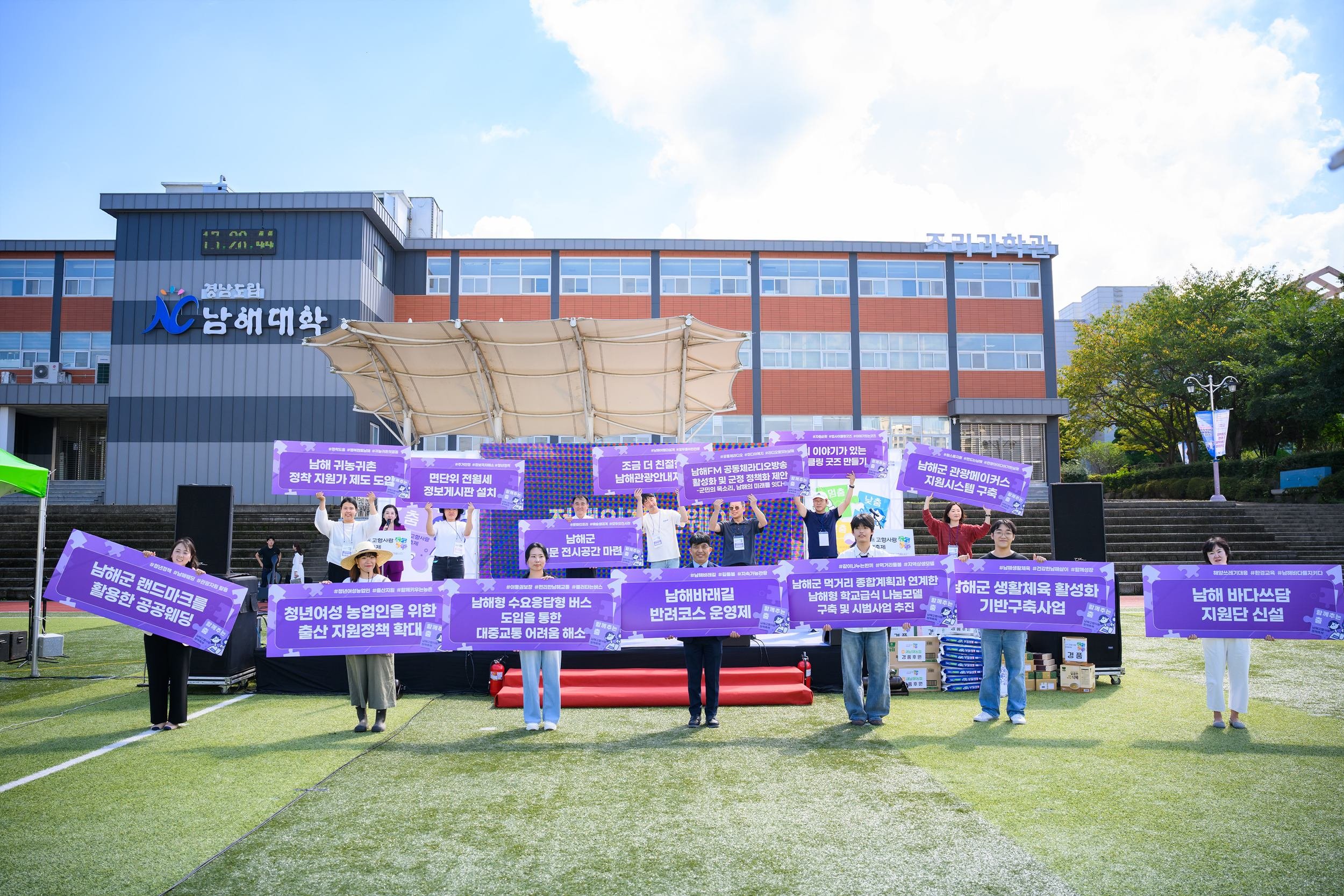 행사장에는 남해군 15개 기관단체가 참여해 군민을 위한 정책을 소개하고 정책 수능 이벤트를 마련하여 참가자들의 호응을 얻었으며, 아이들이 직접 셀러로 참여한 ‘꼼지락 장터(어린이 플리리마켓)’도 열려 가족 단위 방문객들에게 큰 인기를 끌었다. 축제 말미에는 군민들이 직접 투표한 정책의 투표함에서 경품을 추첨해 쌀, 과일, 선물세트 등이 전달되며 축제 분위기를 한껏 높였다.