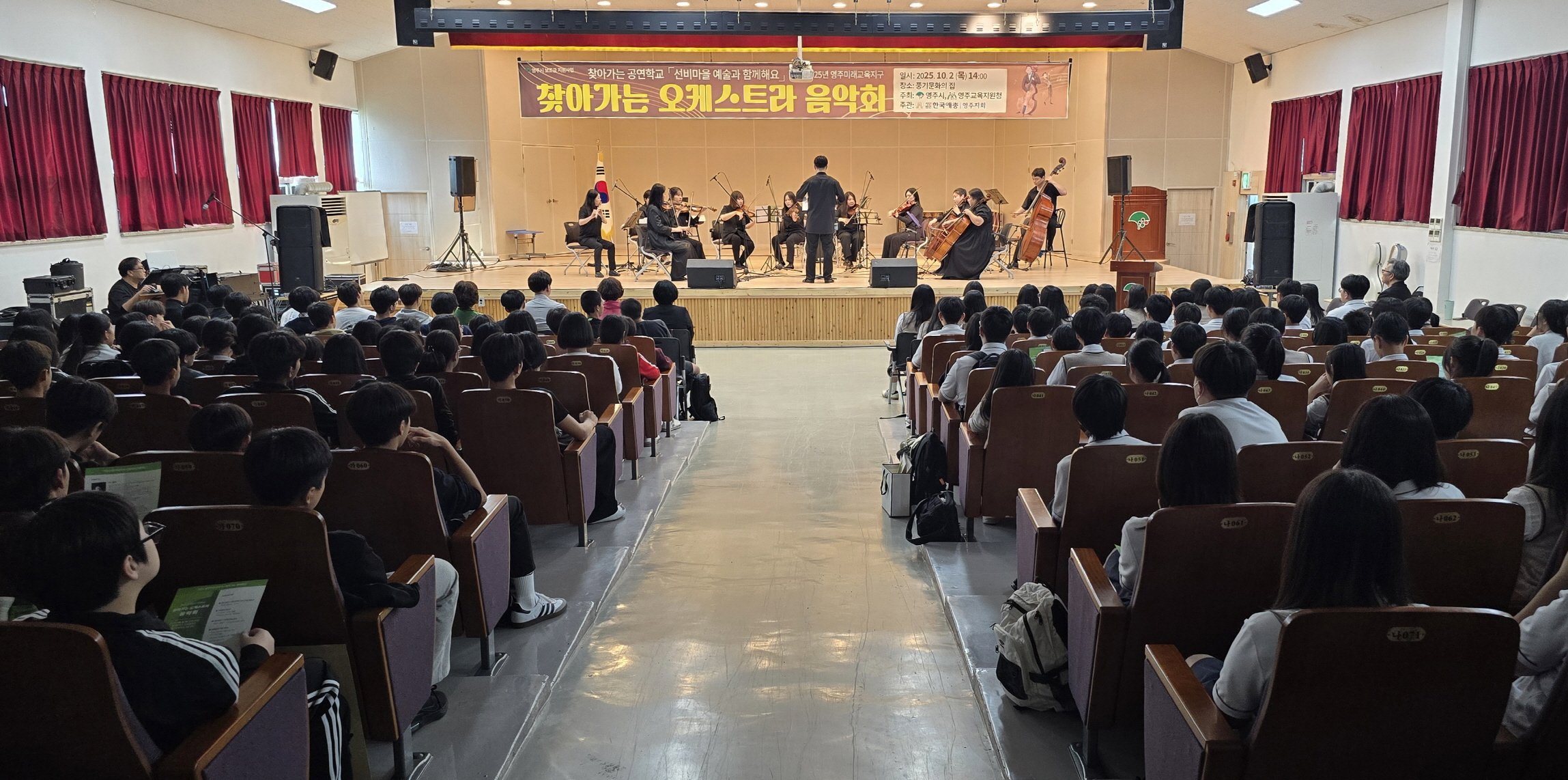 [한국Q뉴스] 영주시는 지난 2일 풍기문화의집에서 풍기중학교와 금계중학교 학생들을 대상으로 2025 영주미래교육지구 연계사업인 「찾아가는 공연학교」 오케스트라 음악회를 개최했다.