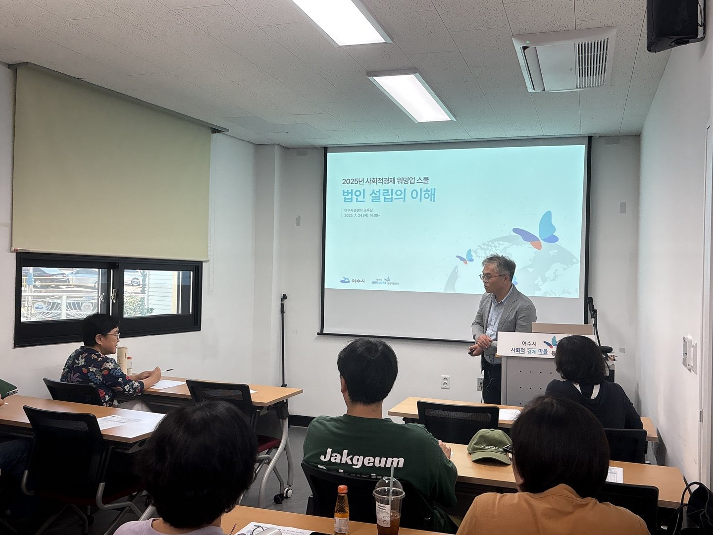 [한국Q뉴스] 여수시는 여수시사회적경제마을통합지원센터에서 사회적경제기업 창업 또는 전환을 준비하는 (예비)창업자를 대상으로 추진한 ‘2025년 사회적경제 워밍업 스쿨’을 9월 26일 성공적으로 마쳤다. 7월부터 진행된 이 교육은 법인 설립 이해, (예비)사회적기업 인증 요건, 협동조합 설립 및 운영 이해 등 실질적인 내용을 중심으로 구성되어 참여자들의 높은 만족도를 얻었다. 시는 이번 교육이 사회적경제에 대한 접근성을 높이고 창업 장벽 완화에 기여했다고 평가하며, 11월에는 마을공동체 입문교육을 진행할 예정이다.