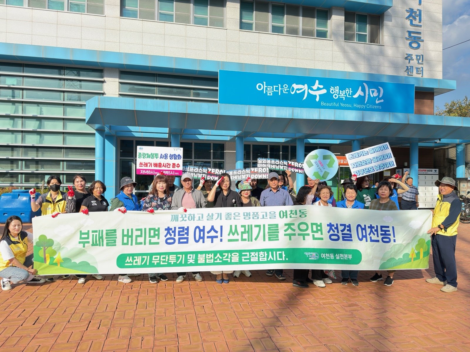 [한국Q뉴스] 여수 르네상스 여천동 실천본부 회원 60여 명이 10월 1일 추석을 맞아 '대한민국 새단장 캠페인' 동참 및 시민 참여 붐 조성을 위한 대청결 활동을 전개했다. 이들은 시외버스정류장에서 여천전남병원 입구까지 쓰레기 배출지 정리 및 이면도로 쓰레기 수거 작업을 실시하며, 2026여수세계섬박람회 성공 개최 결의를 다졌다. 또한 '내 집 앞 내가 청소하기 운동' 등 홍보 활동도 병행했다. 실천본부는 앞으로도 섬박람회 성공 개최 및 대청결 활동을 매월 지속적으로 전개할 예정이다.
