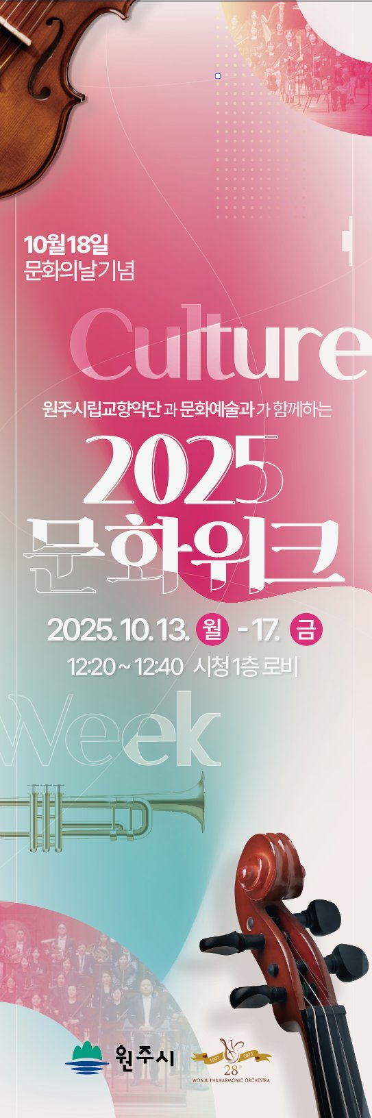 [한국Q뉴스] 원주시와 원주시립교향악단은 10월 18일 ‘문화의날’을 기념해, 10월 13일부터 17일까지 ‘2025 문화위크’를 운영한다.