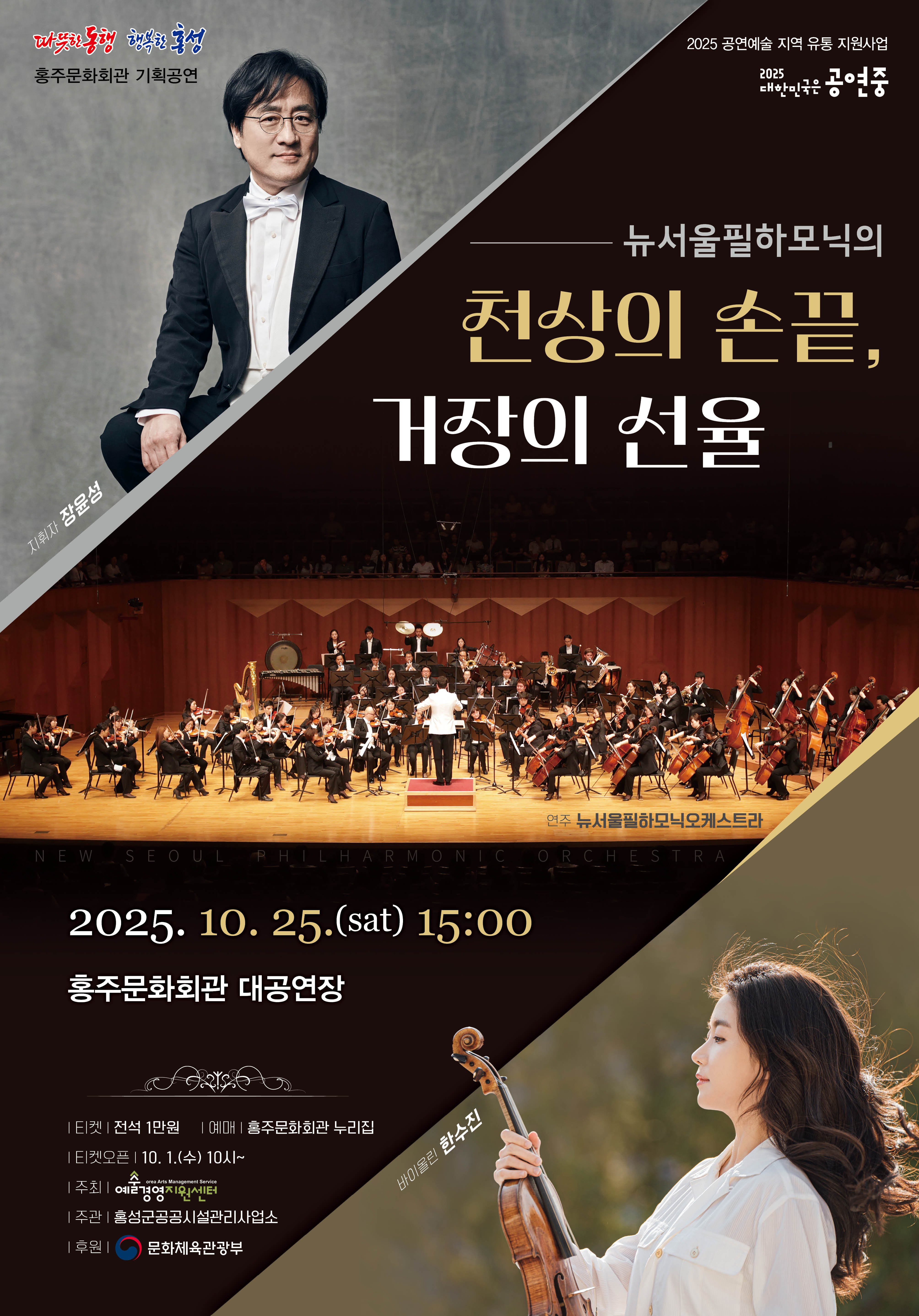 [한국Q뉴스] 깊어가는 가을에 어울리는 정통 클래식 오케스트라 공연 ‘뉴서울필하모닉의 천상의 손끝, 거장의 선율’ 이 오는 25일 오후 3시, 홍성군 홍주문화회관에서 열린다.