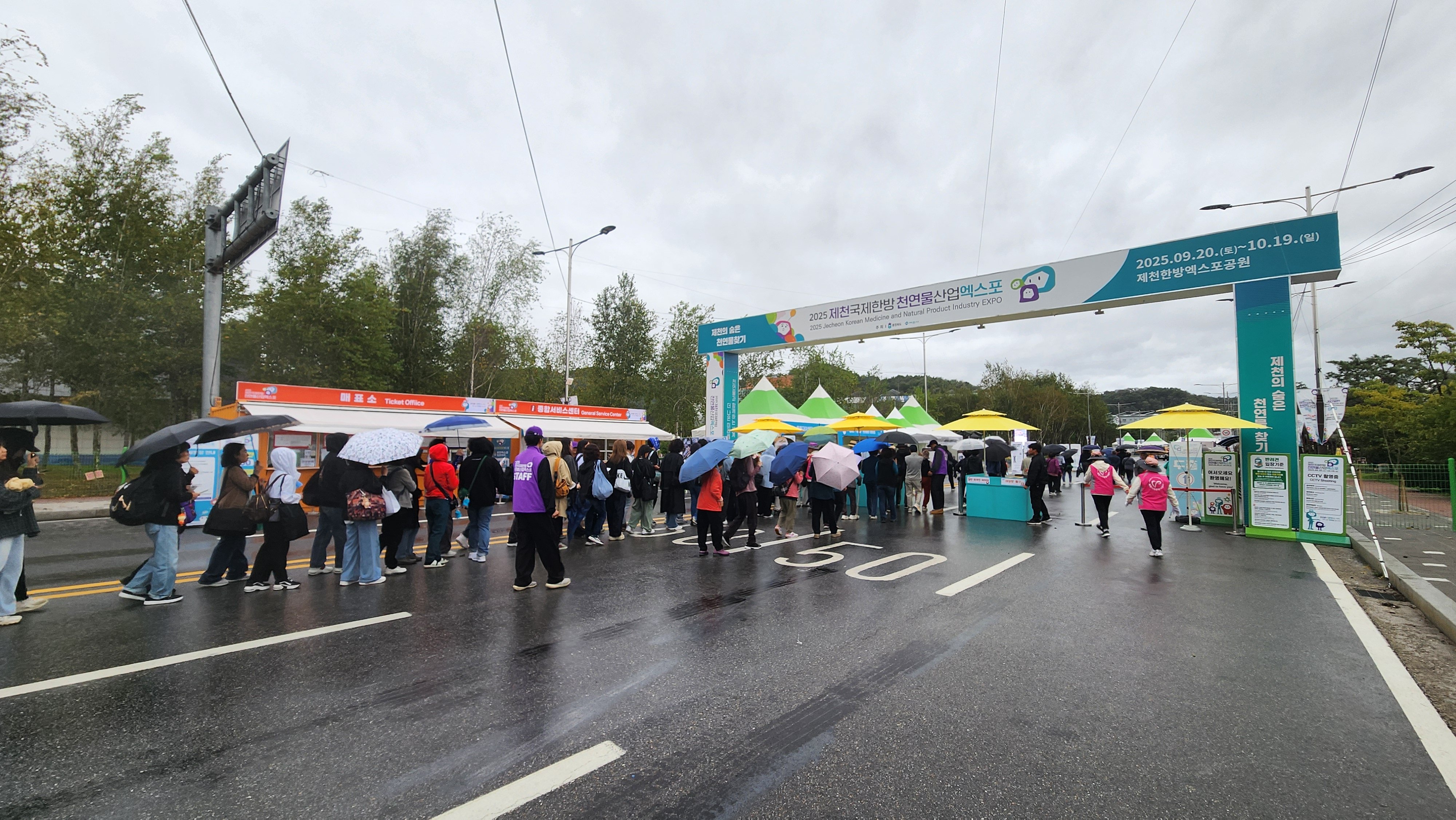 비가 내리는 궂은 날씨에도 2025 제천국제한방천연물산업엑스포를 향한 관람객들의 열기가 식지 않았다.