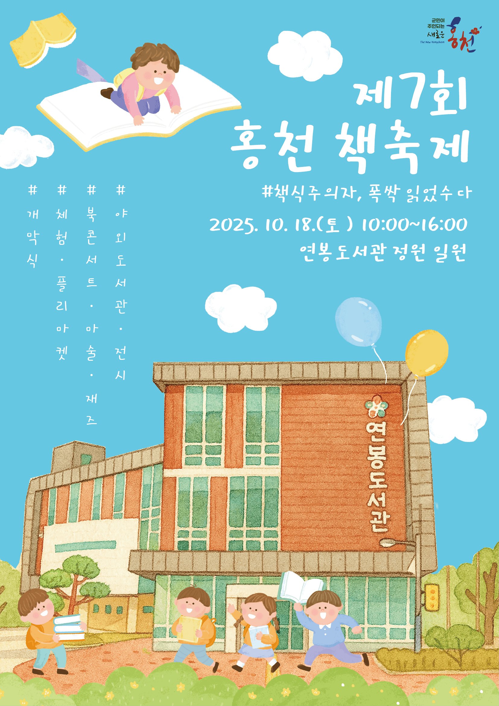 [한국Q뉴스] 홍천군립도서관은 10월 18일(토) 10시부터 오후 4시까지 연봉도서관 정원에서 '제7회 홍천 책축제'를 개최한다.