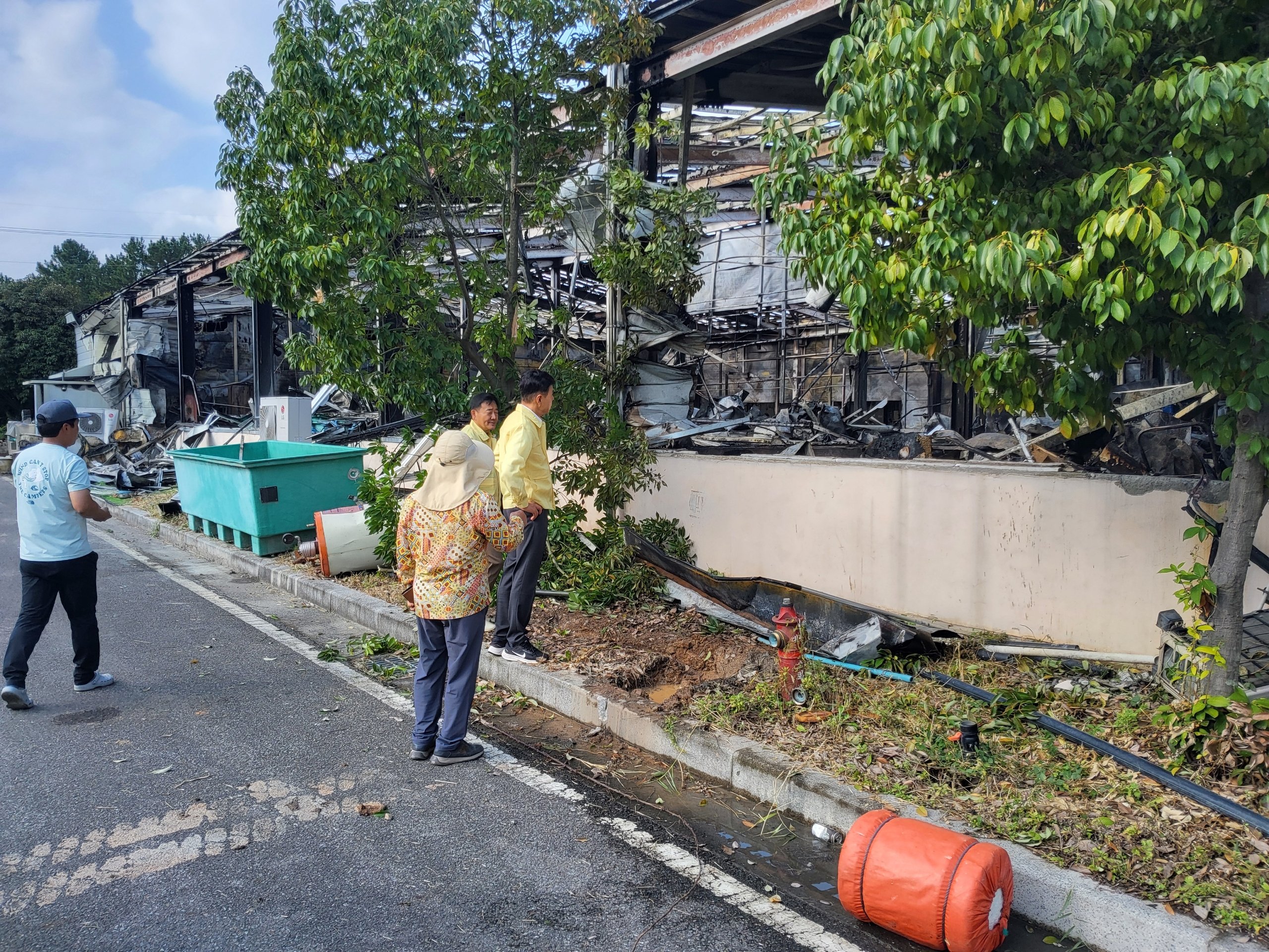 1-3. 보성군 꼬막 등 종묘배양장 화재, 인명 피해 없이 진화 완료 김철우 보성군수가 현장에서 피해 상황을 점검하고 있다 (사진제공=보성군)