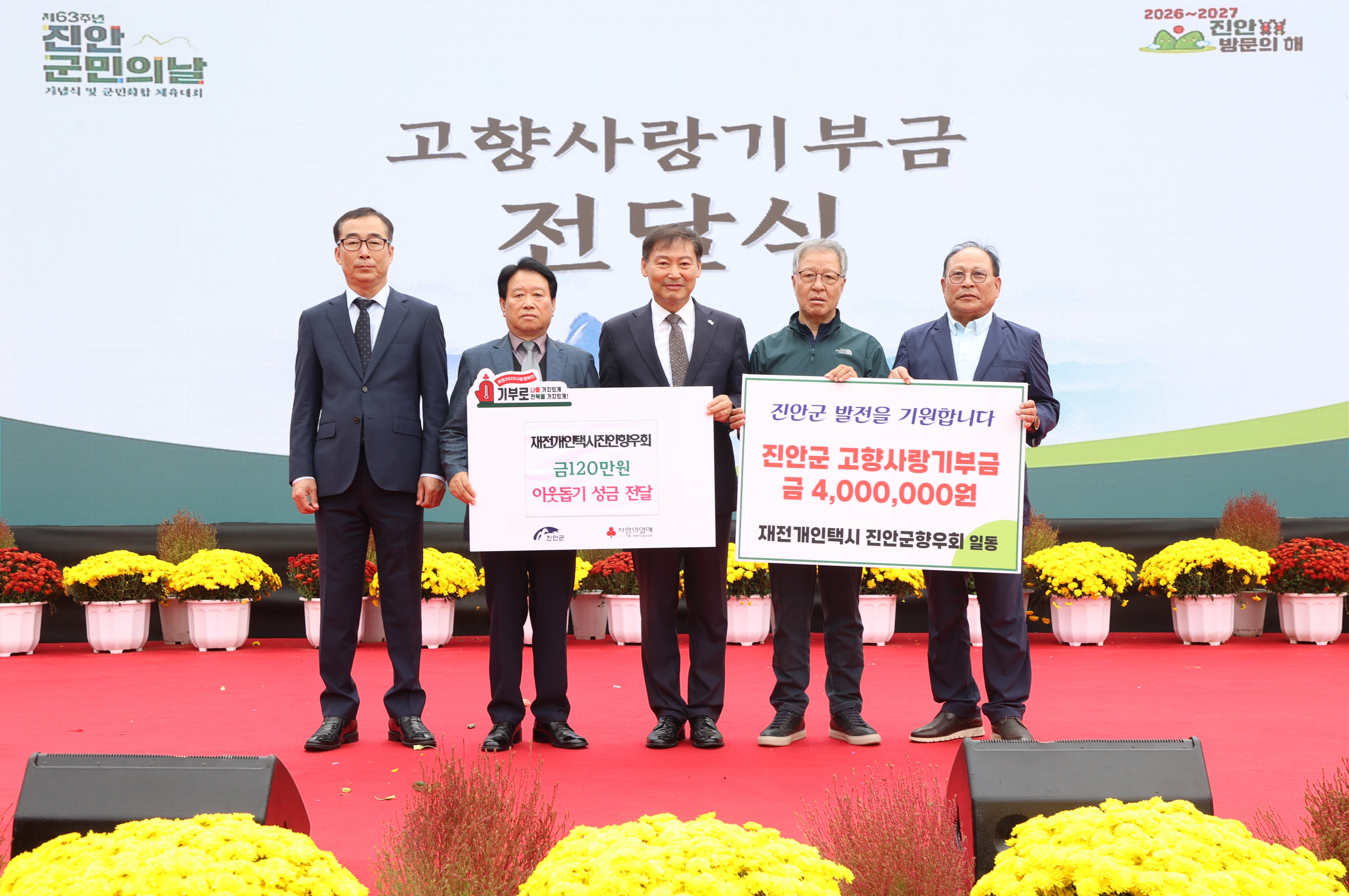 지난 10월 12일에는 제63회 진안군민의 날 기념식이 열린 가운데 재전개인택시 진안군향우회(회장 최중상)가 고향사랑기부제 기탁식을 진행했다.