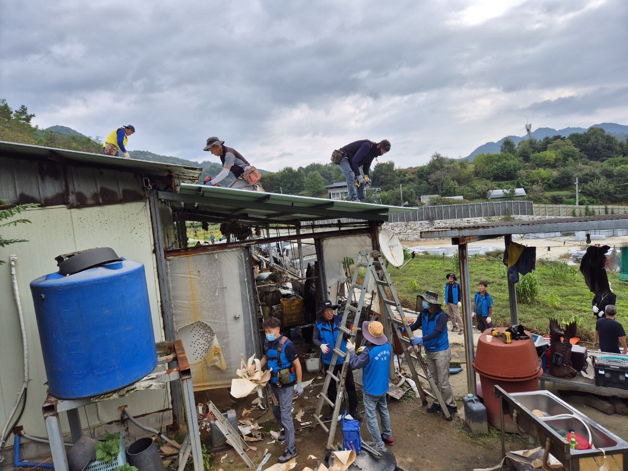 이날 봉사단 회원 20여명은 천장에서 물이 새 집안 곳곳에 양동이를 받쳐두고 생활하던 집을 보수했다.