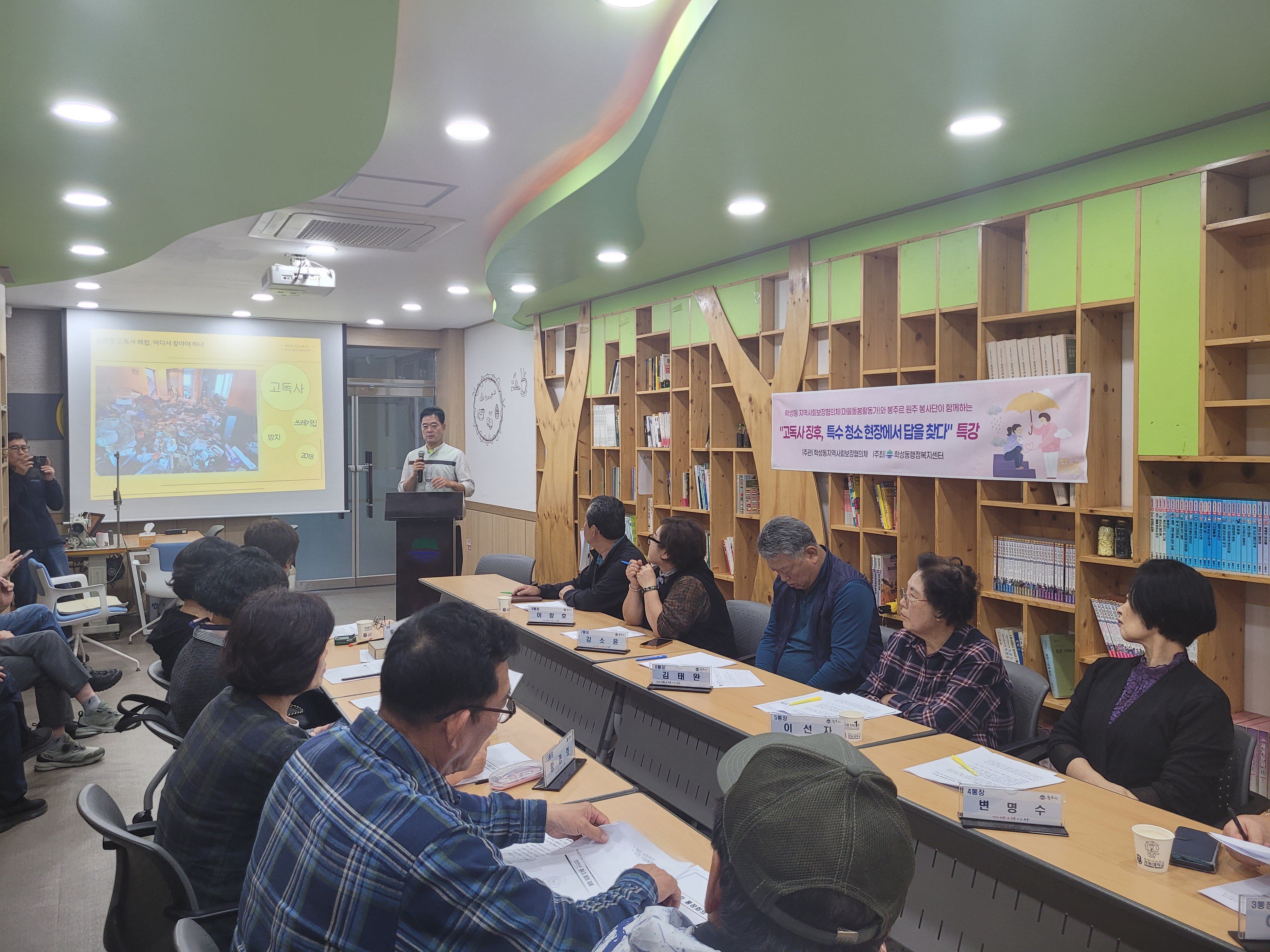 [한국Q뉴스] 원주시 학성동과 학성동지역사회보장협의체(대표 김기환)는 지난 13일 마을 돌봄 활동가 및 지역 단체 회원을 대상으로 ‘고독사 징후, 특수청소 현장에서 답을 찾다’를 주제로 마을 돌봄 리더의 역량 강화를 위한 강연을 실시했다.