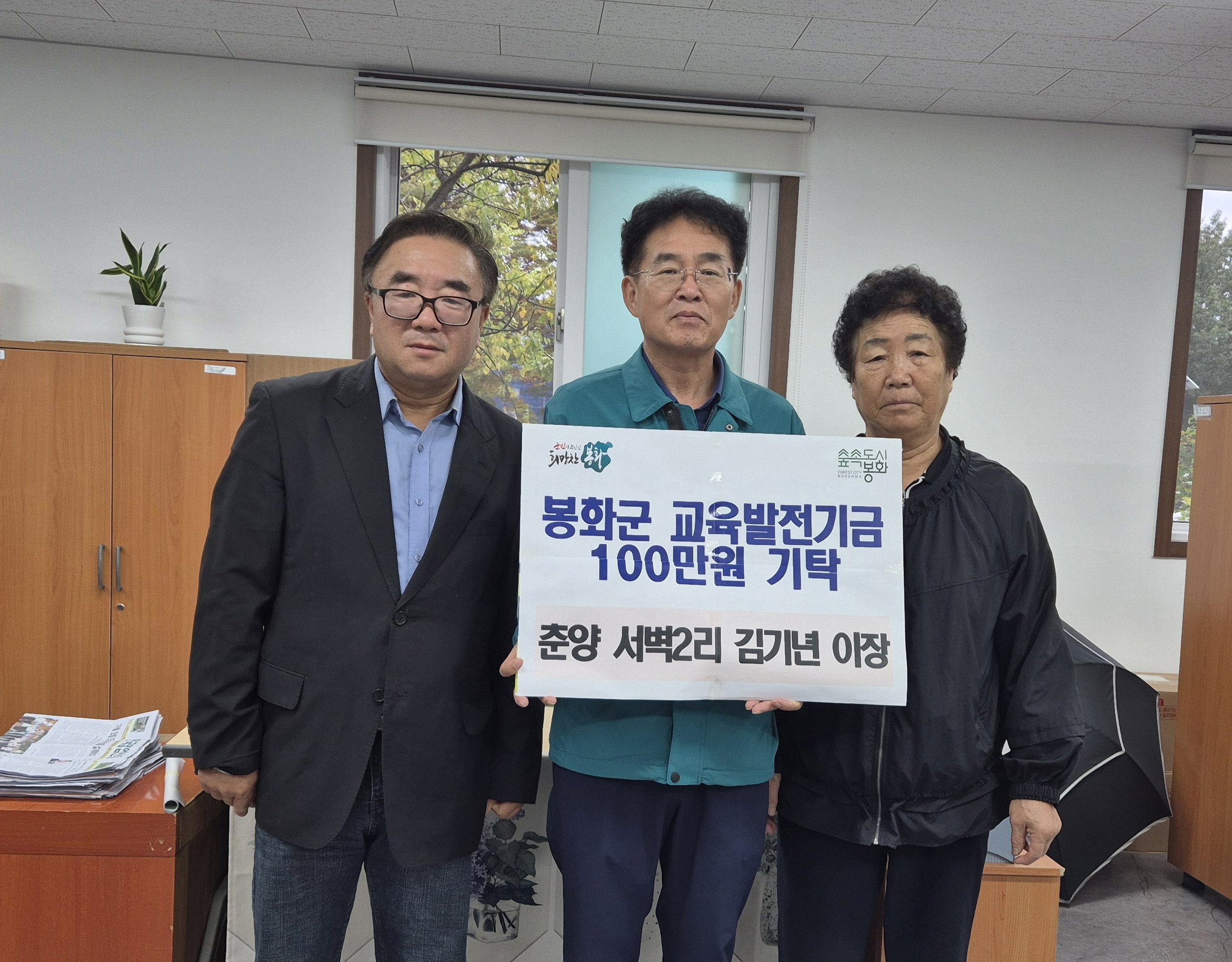 [한국Q뉴스] 춘양면 서벽2리 김기년 이장은 지역 인재 육성과 교육환경 개선을 위한 뜻을 모아 지난 13일 봉화군 교육발전기금으로 100만원을 기탁했다.