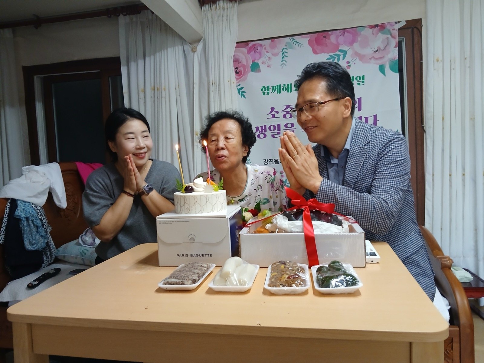 [한국Q뉴스] 강진읍사무소가 최근 홀로 생일을 맞이한 어르신 4명을 직접 찾아가 생신을 축하하고 따뜻한 마음을 전했다.