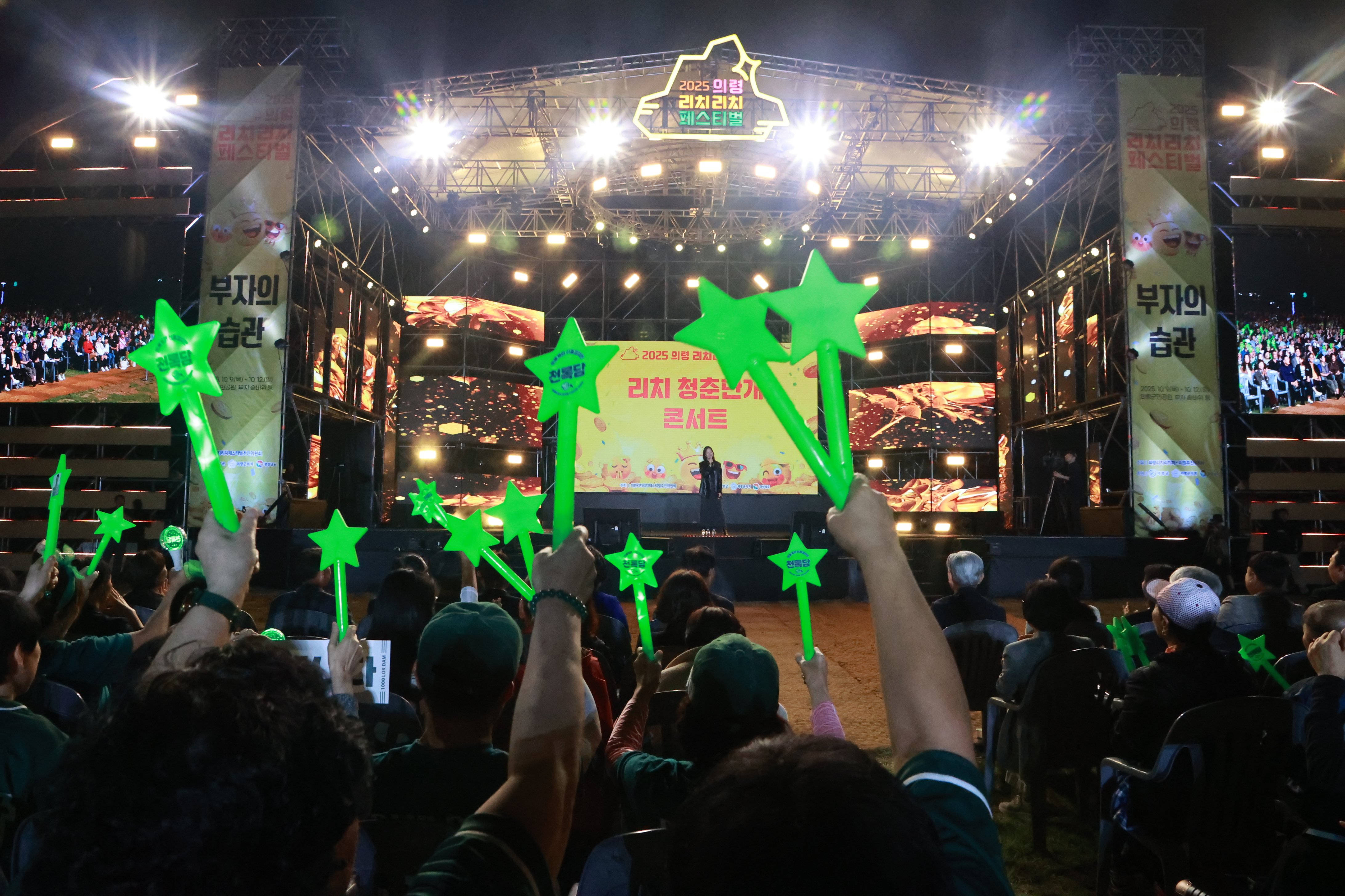[한국Q뉴스] 의령군은 지난 10일 리치리치페스티벌과 연계해 청년과 군민 등 7,000여명이 참여한 ‘리치 청춘만개 콘서트’를 개최했다.