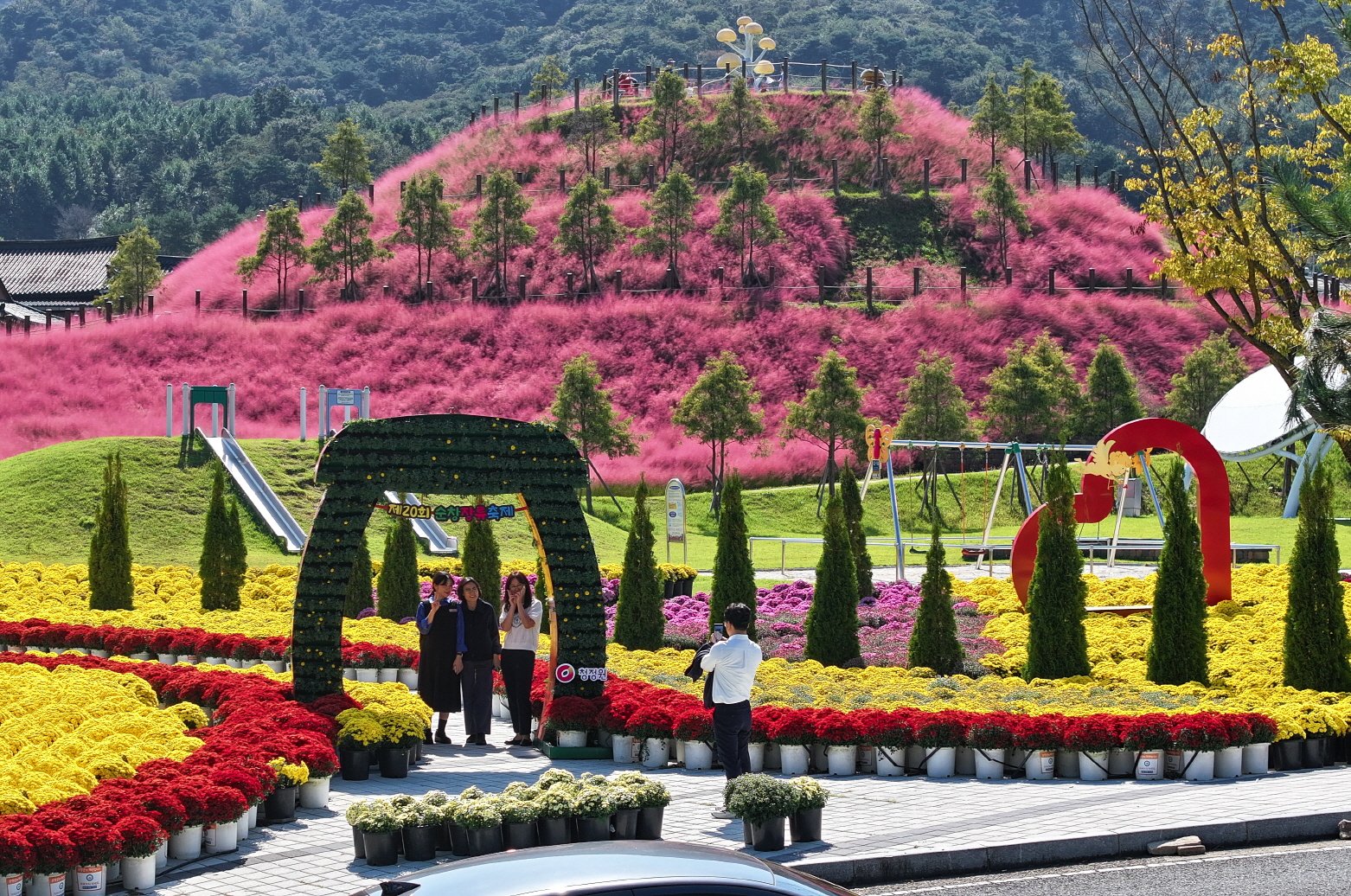 특히 팡이공원에는 1만여 본의 오색 화분국과 조형국, 대국이 어우러진 국화 정원이 조성됐으며, 이곳에는 하트 모양과 전통 장독대를 형상화한 포토존이 마련해 특별한 추억을 사진에 담을 수 있게 했다.