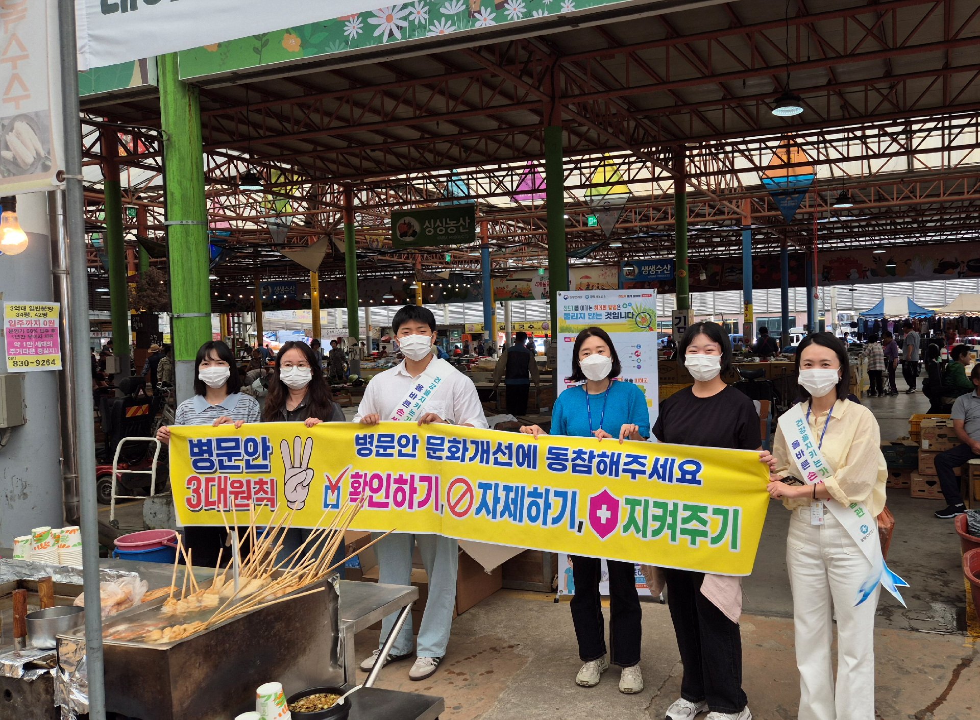 특히 추석 연휴를 앞둔 10월 1일 광양읍 5일시장 일원에서 ‘병문안 문화개선 캠페인’을 전개하고 병문안 문화개선 3대 원칙인 ▲확인하기(병문안 가능시간- 장소 확인) ▲자제하기(환자를 위해 병실 면회 자제) ▲지켜주기(손 위생, 기침 예절 등 예방수칙 지키기)의 생활 속 실천을 시민들에게 당부했다.