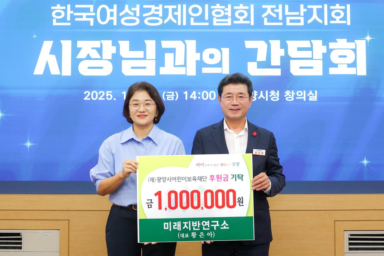 또한 광양 여성기업인 황은아 미래지반연구소 대표는 어린이보육재단에 후원금 100만원을 기탁했다.